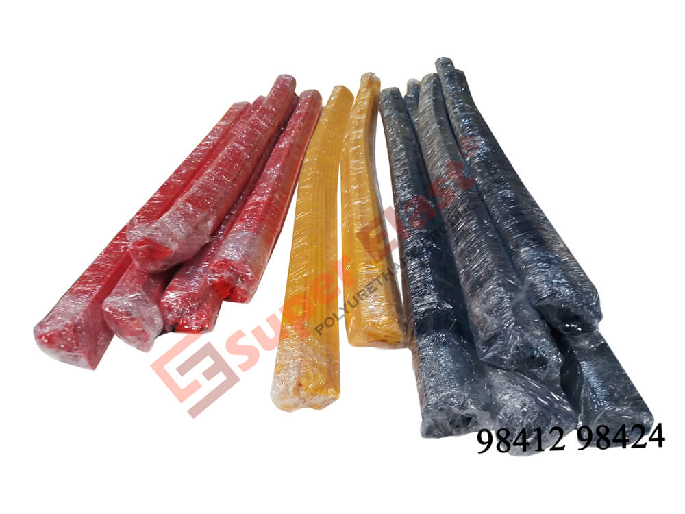 - Polyurethane profiles are manufactured though casting (not by extrusion) therefore the cross-link of polyurethane molecules are omnidirectional- improving wear resistance