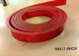 state-of-the-art formulas for raw materials and additives, which turned into an increase of profile performances - Liner 40,42,44,46mm width x 8 mm thick – Hardness 60 to 65 Shore A (used on various machines including single wire saw Bidese Impianti / Breton) This liners are sold in rolls of 3150 mm. On request it is possible to supply rolls in different length / thickness / width